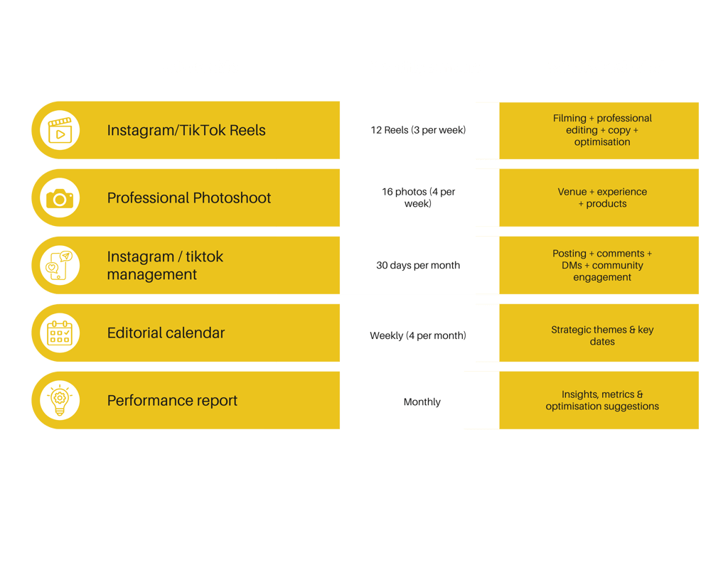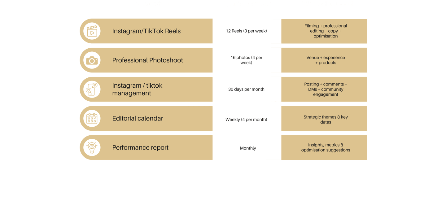 (birthdays, proposals, Mother’s Day, hen parties…)Content showcasing the creative journey: people → creation → memories